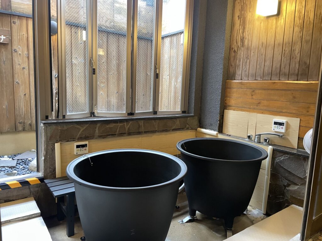 新しく設置した五右衛門風呂↓。ガス追い焚き機能がありますので、すぐに温まります。