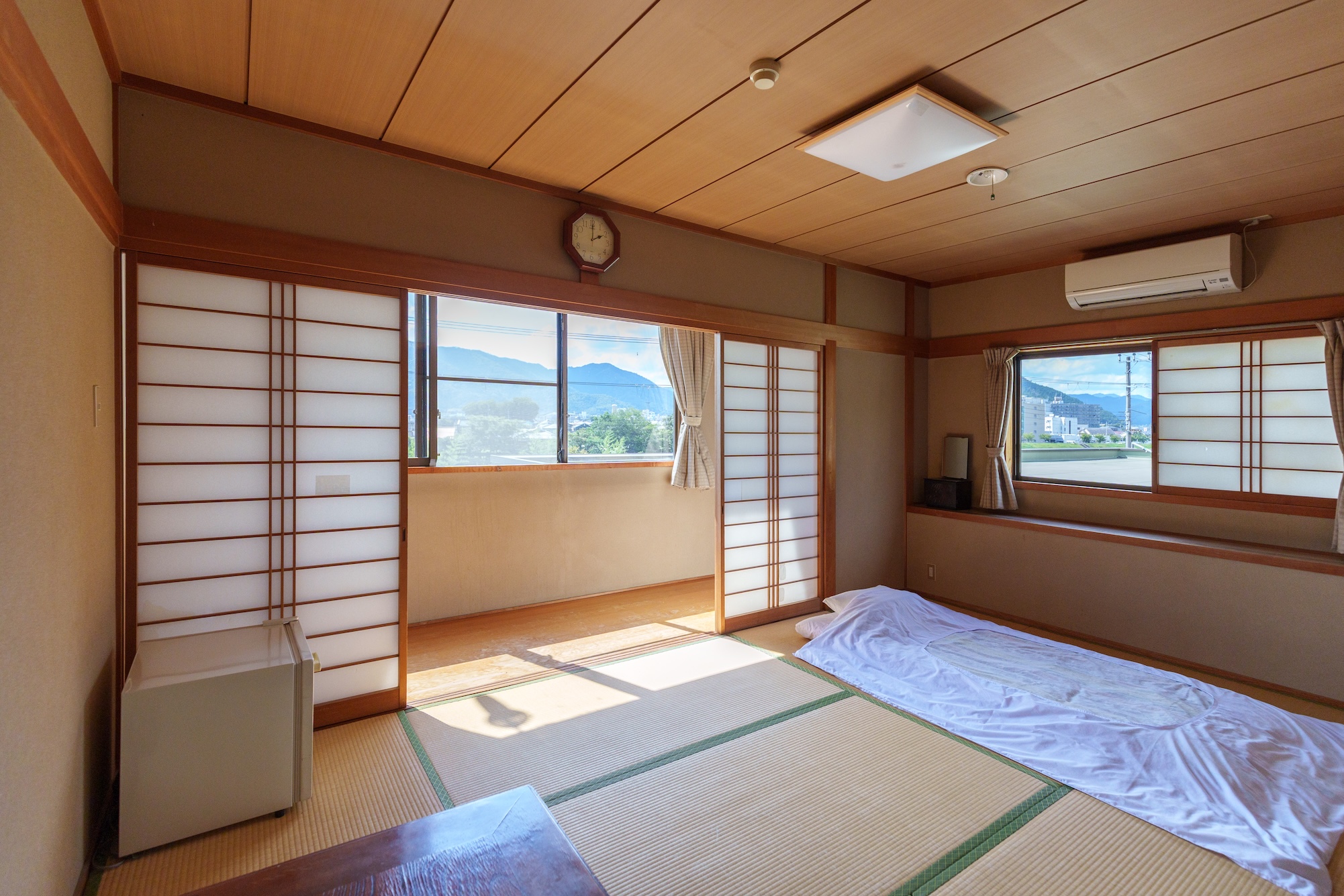 6〜7.5畳の風呂なしの和室。ご家族での宿泊も可能です。長期ご宿泊もお気軽にご相談ください。